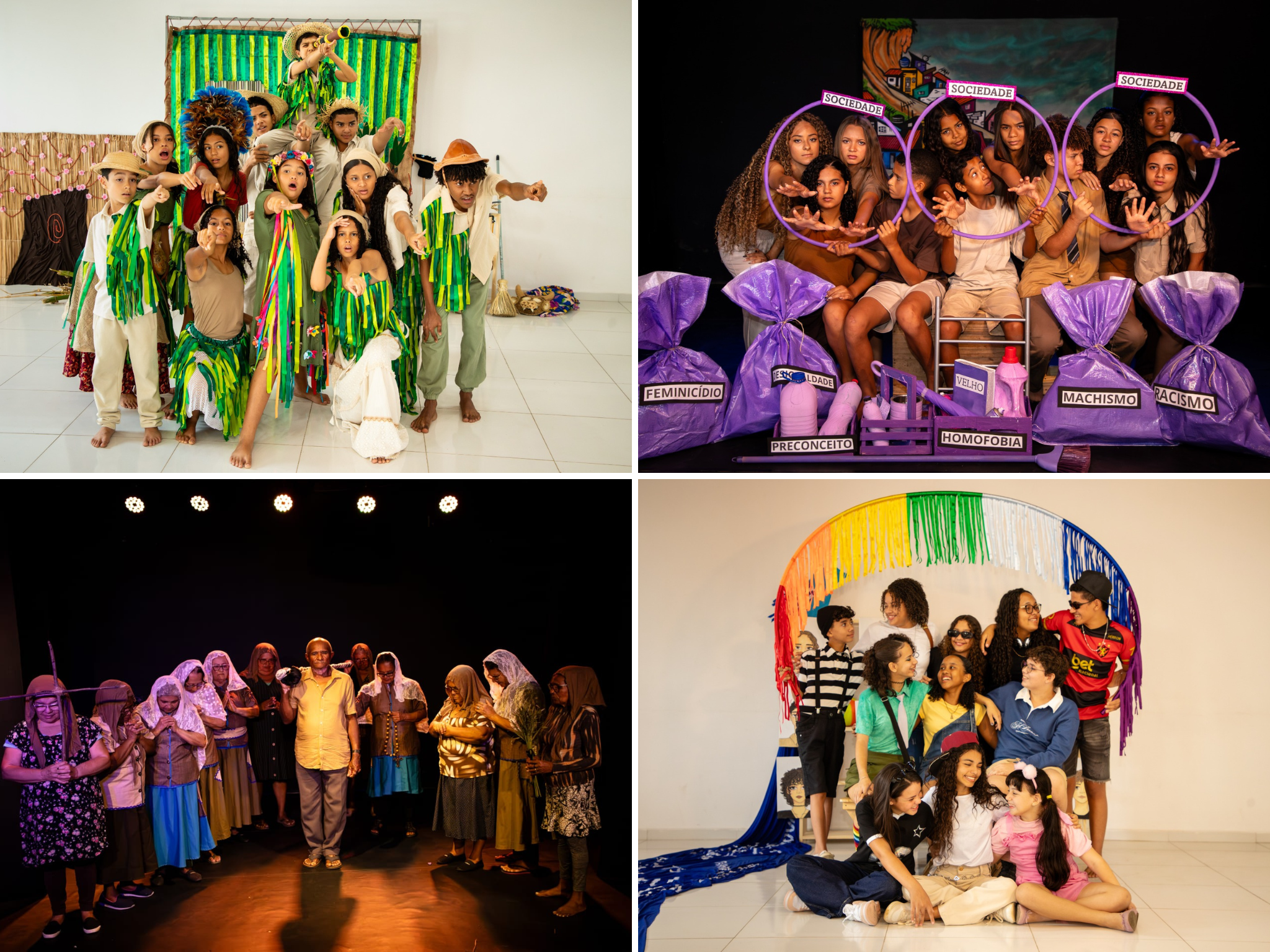 O evento começou na terça-feira (07) com a apresentação do grupo de teatro Tubira-bá, que emocionou com o espetáculo “Terra à Vista”, sobre direito à moradia e ao trabalho digno. Também fruto do projeto Cidade Sustentável na cidade de Pombos, o grupo Brincantes do Futuro refletiram sobre o meio ambiente e infância com “Avoante”. Em Lagoa de Itaenga, o grupo DonArte de pessoas idosas trouxe a potente peça “Vozes que Brotam” para tratar do direito à água e à terra. E para finalizar, os adolescentes do grupo Tô Ligades fecharam a mostra com muita emoção no espetáculo “Toda vez que dou um passo o mundo sai do lugar”, trazendo temas de gênero, racismo e violência doméstica.